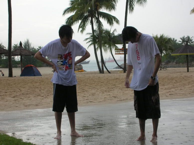 I wen to Sentosa , after my skol.... With my classmates... In the morning i pray not to rain coz i heard from radio tat there will be raining in many areas... Oh my god... RAINING.... We reach ther around 3 plus but is still raining lor... Wen to soliso beach... Play under the rain... rain not that big... We play soccer, monkey game...